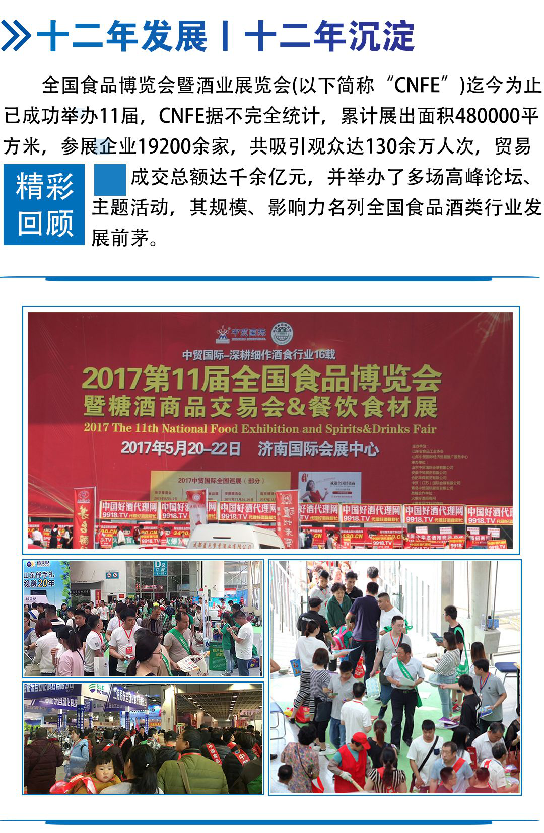 中貿(mào)集團2018年將在山東濟南、安徽合肥、江蘇南京、黑龍江哈爾濱、浙江杭州等省市舉辦十余場次食品展、酒博會、餐飲展,形成聯(lián)動招商、資源互動和共享。