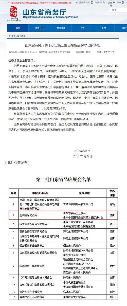 全國食品博覽會(huì)榮獲山東省品牌展會(huì)的殊榮,不僅是省商務(wù)廳對展會(huì)走向品牌化權(quán)威肯定,也是對近年來全國食品博覽會(huì)在會(huì)展產(chǎn)業(yè)